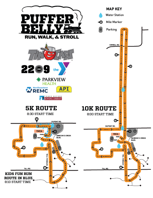 Join us for the 17th Annual Pufferbelly Run/Walk/Stroll. We’ll run the race on the Pufferbelly Trail. The proceeds from this event will be used to further our work developing trails, including new sections of the Pufferbelly Trail. When completed, the trail will be part of the Poka-Bache Connector, running from Ouabache State Park in Bluffton to Pokagon State Park in Angola. This 82-mile connector trail will bring Steuben, Dekalb, Allen, and Wells communities together. This trail is a crucial part of the United Trails project in our region. It is planned as a tourist destination and for cultural growth for residents in all four counties. Ultimately, this trail will solidify the fact that Northeast Indiana is a thriving, culturally rich, active, and healthy community that’s a fun place to visit and a great place to live.