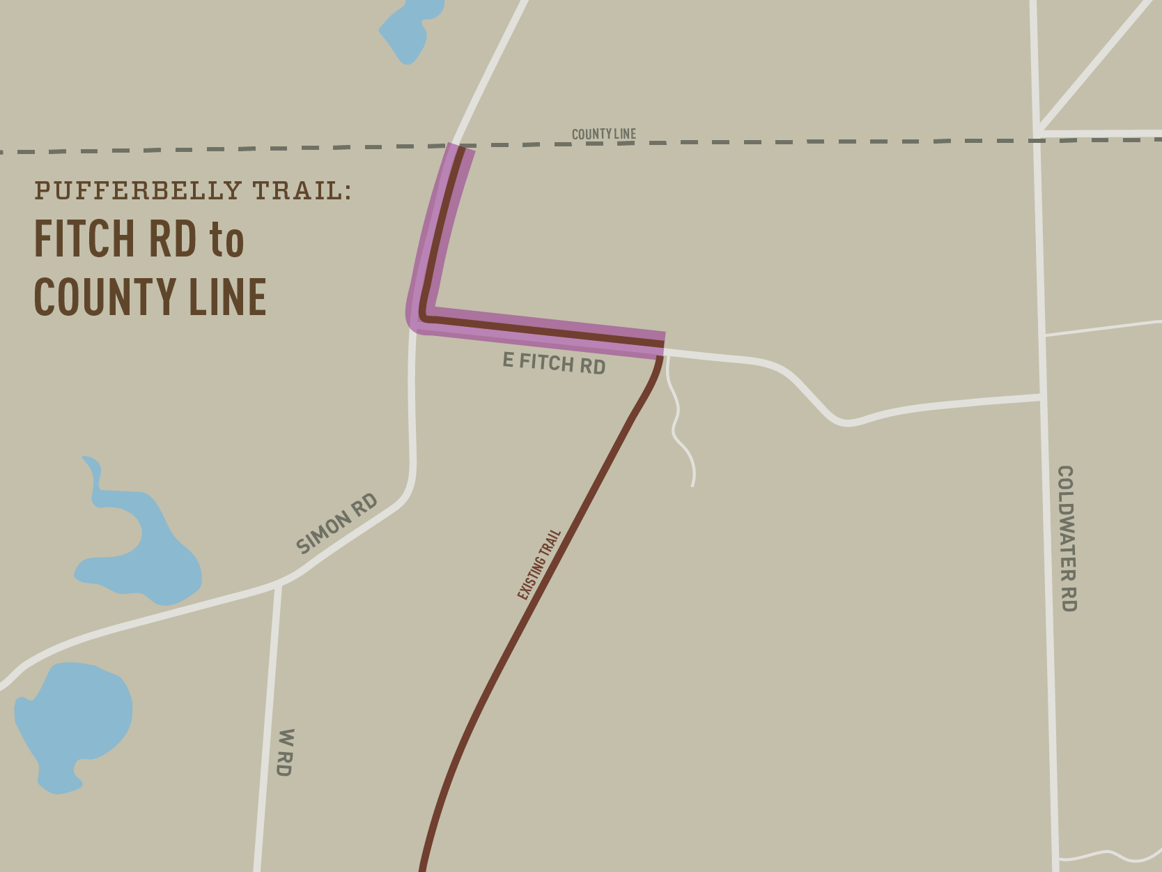 12′ wide trail from Fitch Rd to the DeKalb County Line following Fitch Rd and County Rd 9A. The project is designed and all right of way is complete. Funding budgeted for 2024 was needed for another project. Funding may be available in 2025. On hold until DeKalb decides on alignment.