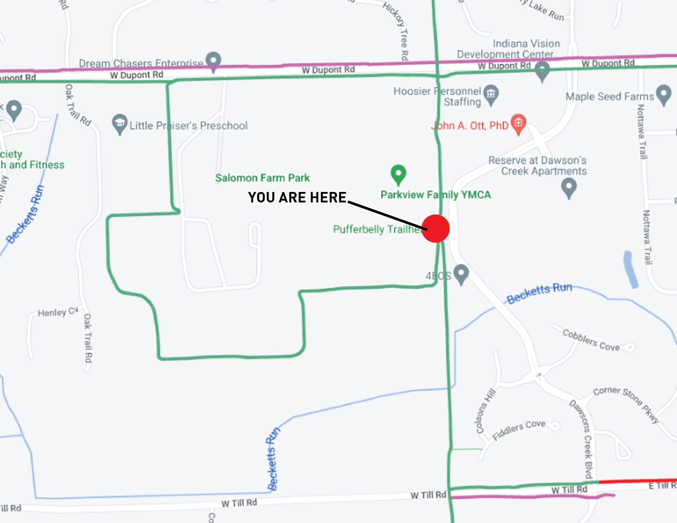 YOU ARE AT SALOMON FARM PARK / PARKVIEW FAMILY YMCA ON THE PUFFERBELLY TRAIL